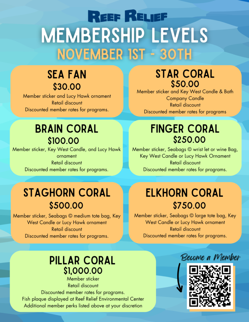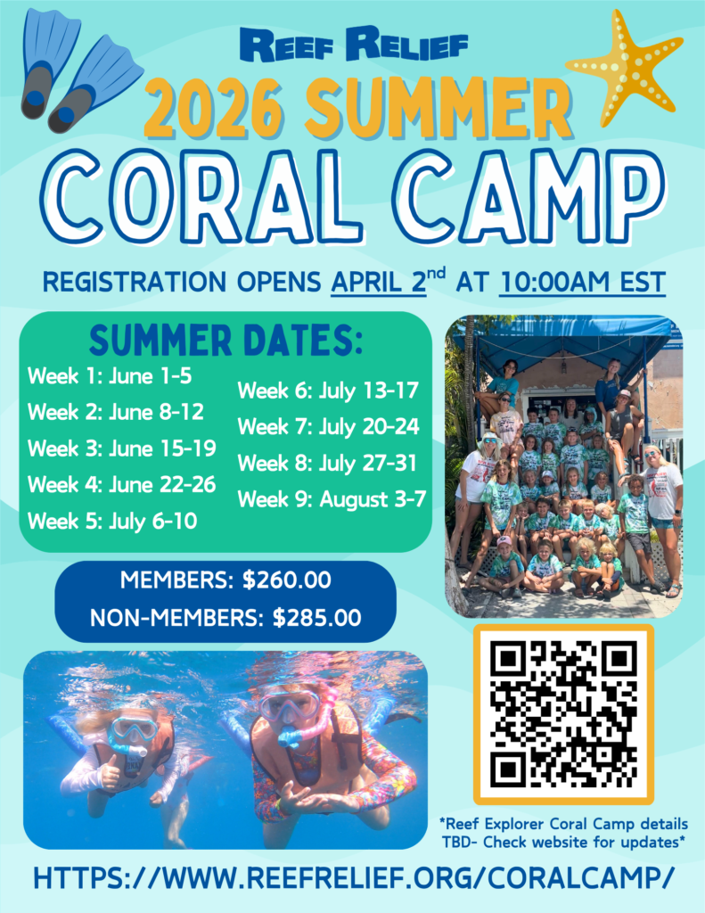 Make a one time, recurring, or memorial donation, become a Reef Relief member, support our educational programming, or sponsor a coral camper.