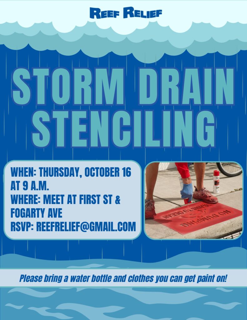 Join Reef Relief in a marine debris clean up or a storm drain stenciling event.