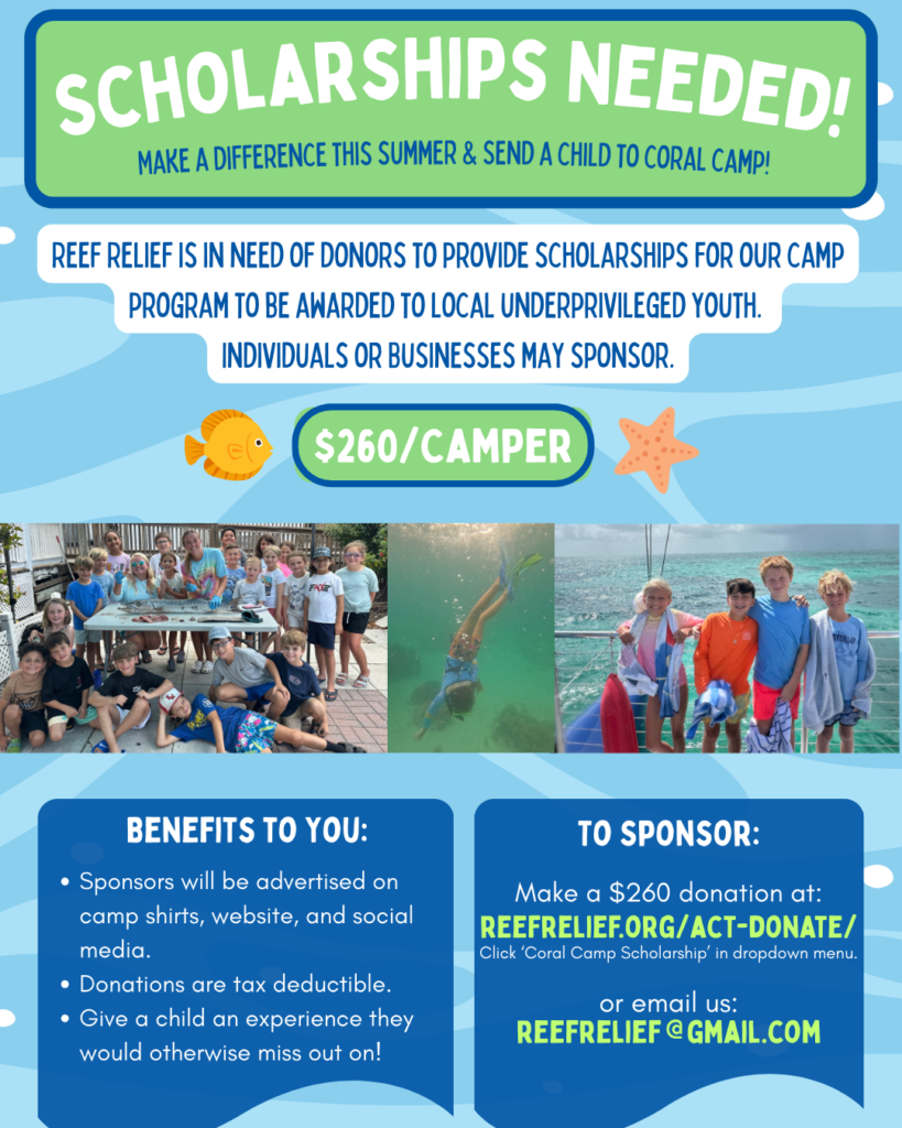 Would you like to sponsor a child’s Coral Camp tuition this upcoming summer? Click the button below and select ‘Coral Camp Scholarship’ in the dropdown menu.