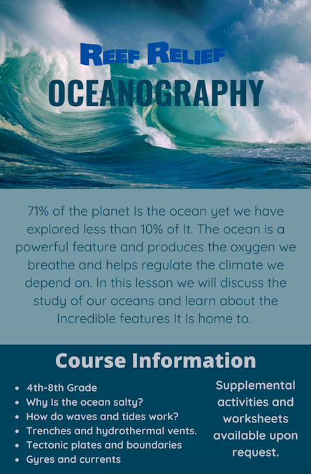 All lessons are provided free of charge to increase accessibility of marine science education as part of Reef Relief’s Marine Science for All initiative. Any donations that are able to be made directly support our programming and are greatly appreciated.
