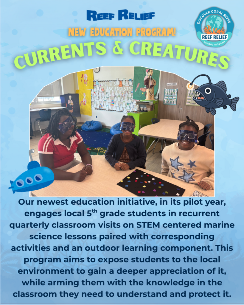 “Reef Relief is able to come into any classroom and teach content that is very appealing to students and intrigues students to develop a deeper understanding about science and our environment where we live.” ~Ryan Stamey, 1st Grade, Poinciana Elementary School – Monroe County School District (In Person Participant)